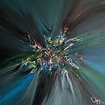 Een globale impressie van het schilderij "Blue Hummingbird" 70x70cm.