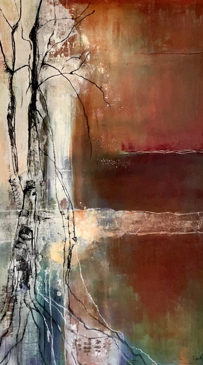 Een globale impressie van het schilderij "Morningwalk" 80x140cm.