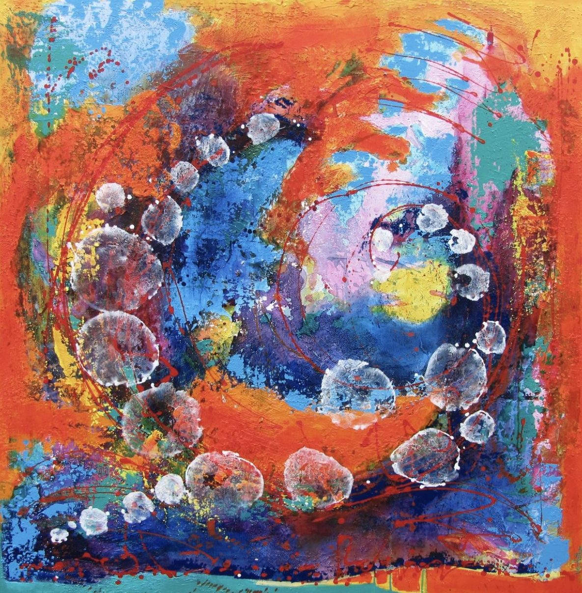 Een globale impressie van het schilderij "Seaworld 1" 120x120cm.