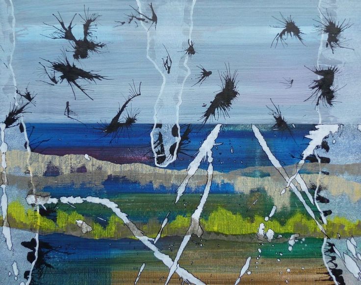 Abstract schilderij uitgevoerd in Olieverf en Inkt op Linnen