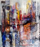 Een globale impressie van het schilderij "S'morgens in een stad" 60x80cm.