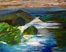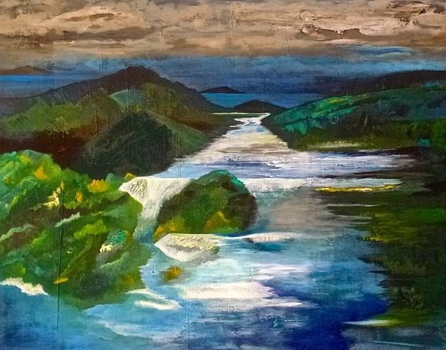 Een globale impressie van het schilderij "Waterval" 100x80cm.